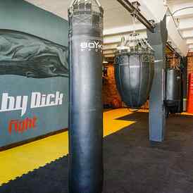 Moby Dick Fight оснащен разнообразными снарядами и техническими системами для полноценного тренировочного процесса: профессиональные боксерские мешки, собственный ринг, разнообразный дополнительный инвентарь и экипировка (перчатки, лапы).